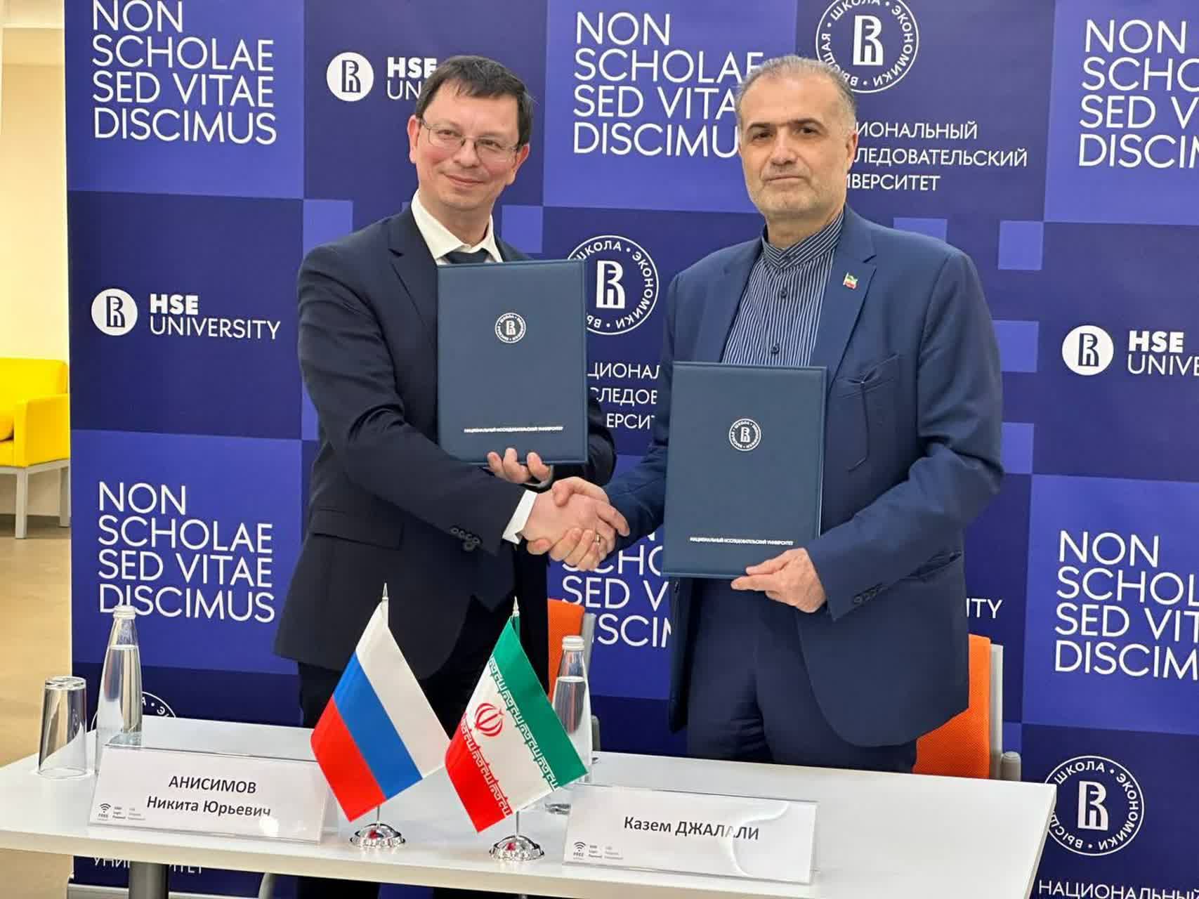 در این مراسم که روز دوشنبه ۲۳ بهمن با حضور هادی گودرزی رایزن علمی و مسعود احمدوند رایزن فرهنگی سفارت جمهوری اسلامی ایران و جمعی از استادان و مدیران دانشگاه تحقیقات ملّی مدرسه عالی اقتصاد برگزار شد، طرفین بر گسترش روابط علمی و پژوهشی میان دانشگاه‌ها و مراکز تحقیقاتی دو کشور تأکید کردند.